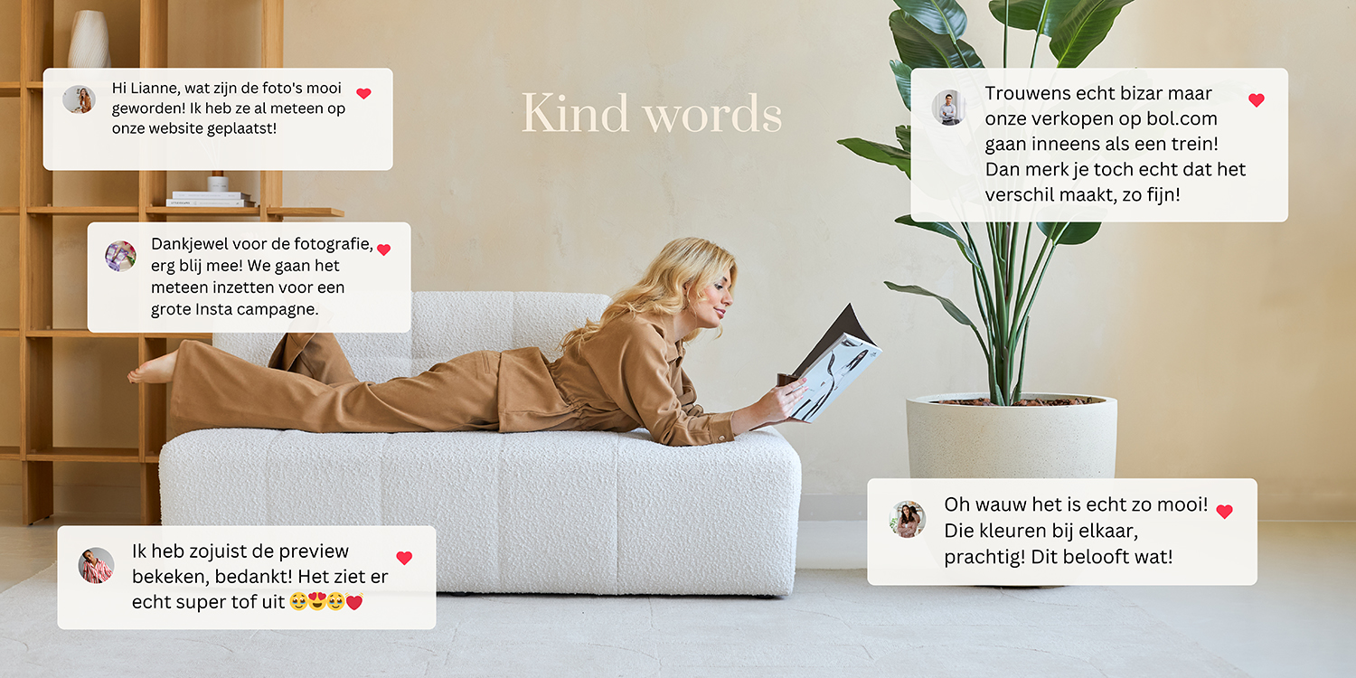 Lianne is een topper! Ze staat helemaal voor je klaar, is flexibel en werkt merkbaar met veel enthousiasme, creativiteit en plezier. Dat zie je echt terug in het werk wat ze levert. Vooral het feit dat ze zo openstaat voor feedback vind ik een súper plus, dat heb ik nog niet eerder zo meegemaakt met een fotograaf. Ik werk daarom graag de volgende keer weer met Lianne samen. Nogmaals bedankt voor de prachtige foto's!